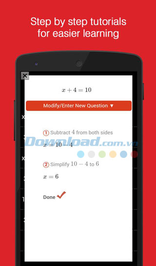 Bạn đã từng nghe đến khả năng giải toán chỉ bằng cách rọi Camera vào công thức và nhận ngay kết quả kèm lời giải? Hiện nay cũng có khá nhiều ứng dụng như vậy ra đời nhằm giúp người dùng thuận lợi hơn trong việc học toán cũng như kiểm tra được chính xác đáp án của mình sau khi giải. Hoạt động giống như Photomath - Phần mềm giải toán bằng camera từ điện thoại, ứng dụng này cũng chứa nhiều tính năng ưu việt như: giải và cho kết quả nhanh, liệt kê các bước giải, có khả năng giải những phép tính phức tạp với hơn 250 công thức toán học.